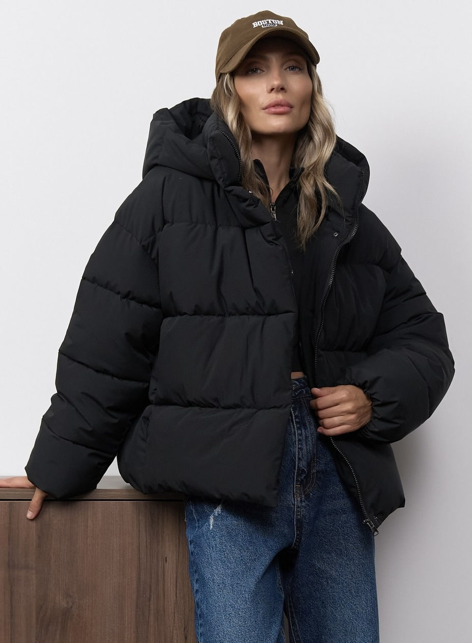 Жіноча курточка оверсайз пуфер . - Матеріал: верх- плащівка, утеплювач еко-пух лебединий (температурний режим до - 15°) - Капюшон відстібний - Внизу курточка на затяжках - Застібається на блискавку та додатково ґудзики - на рукавах курточки внизу резинки