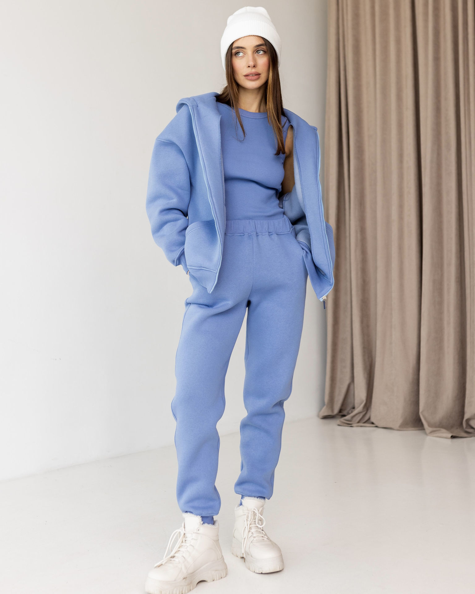 У цьому комплекті худі йде з довгими рукавами на манжеті, прямий низ також обшитий манжетою з рібани.