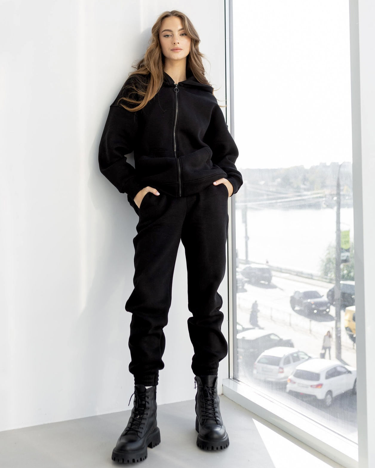 У цьому комплекті худі йде з довгими рукавами на манжеті, прямий низ також обшитий манжетою з рібани.