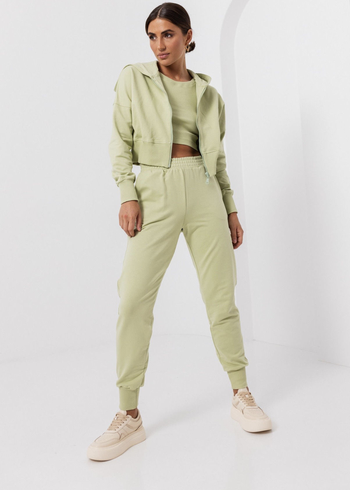 - Тканина: трикотаж двунитка (95% бавовна, 5% лайкра) -Кофтинка вкорочена , манжети внизу виробу та на рукавах виконані з рібани. - Штани йдуть з широкою гумкою в поясі та манжети внизу. Також з боків є зручні кишені. - Майка трикотаж рубчик - На моделі розмір S