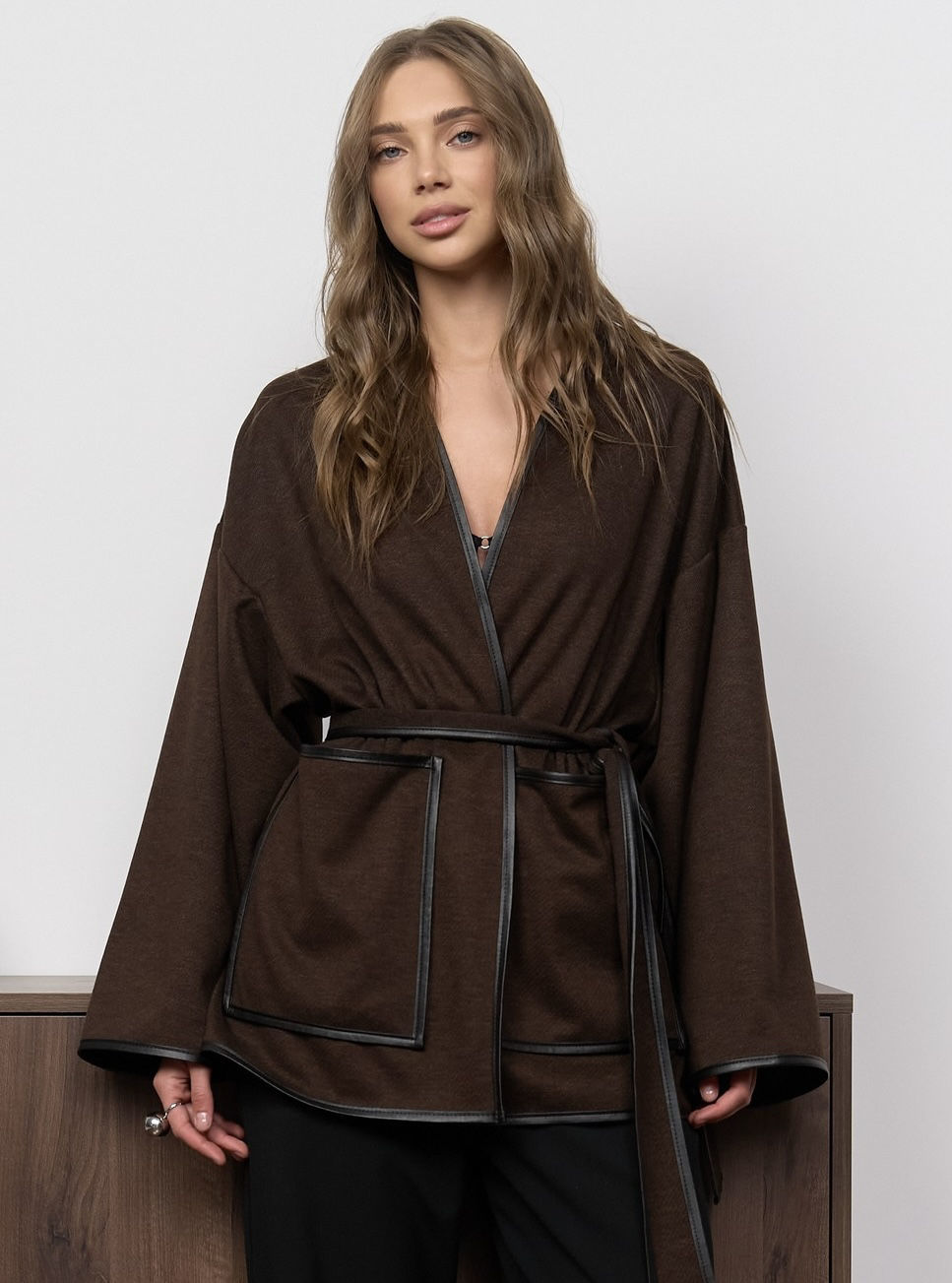 • Кардиган з кантом з еко- шкіри