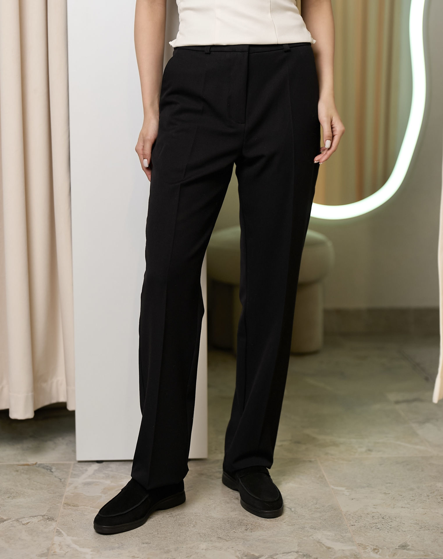- Класичні штани сигаретки - Модель виготовлена з костюмної тканини - На високій талії, чудово сідають по фігурі - є кишені з двох боків - на моделях розмір S