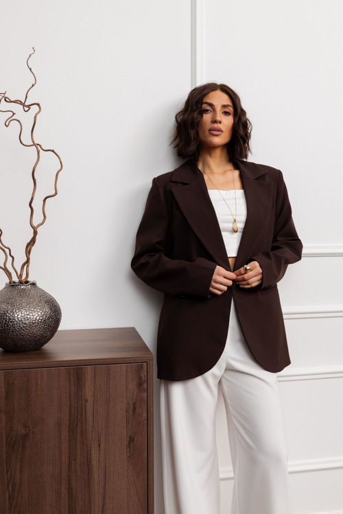 Жакет оверсайз крою, ілегально підходить під класичні або ж під кежуал образи.