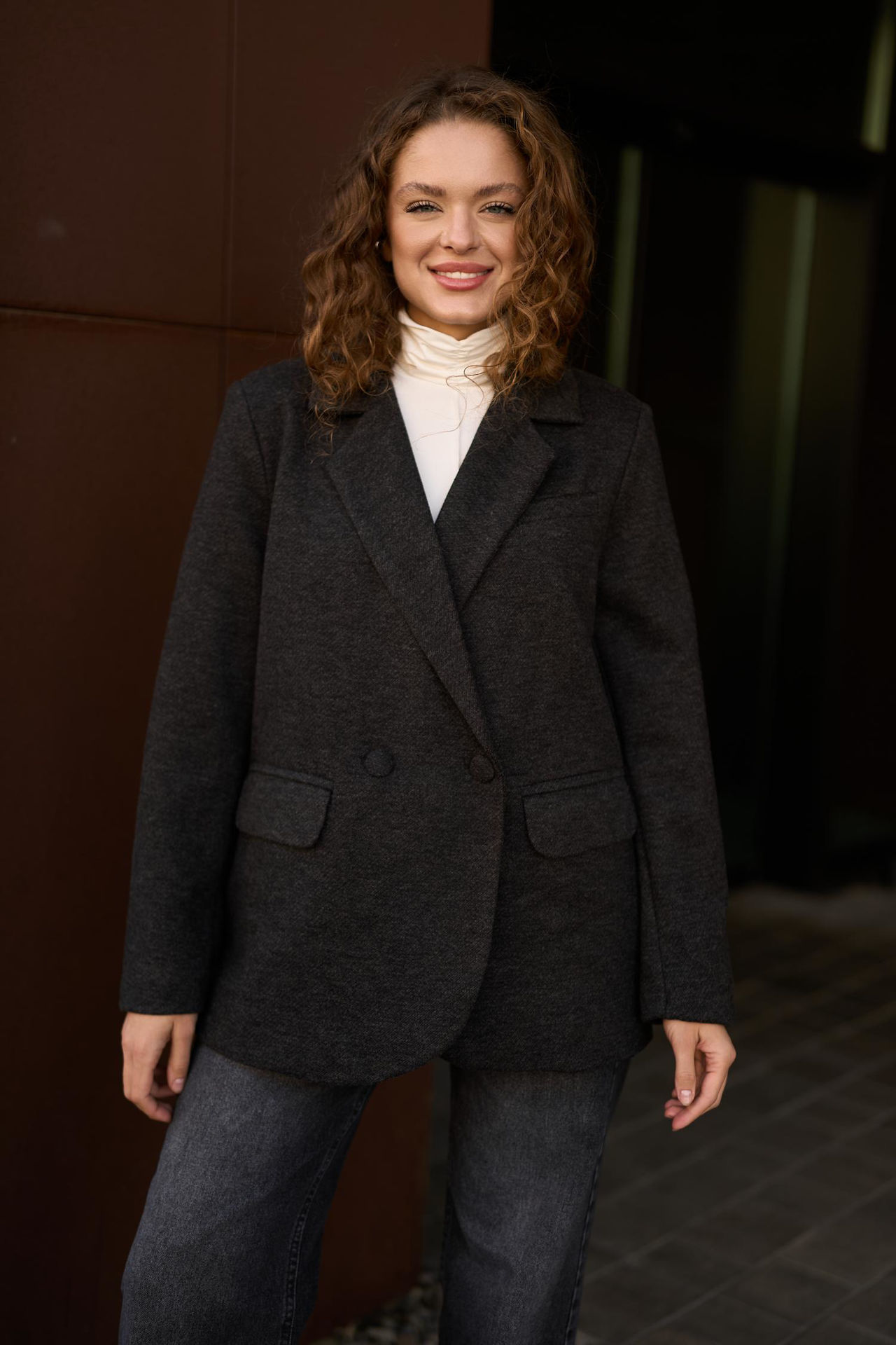 - V-подібні лацкани - застібка на ґудзик - костюмна тканина - гладка підкладка - на моделях розмір S